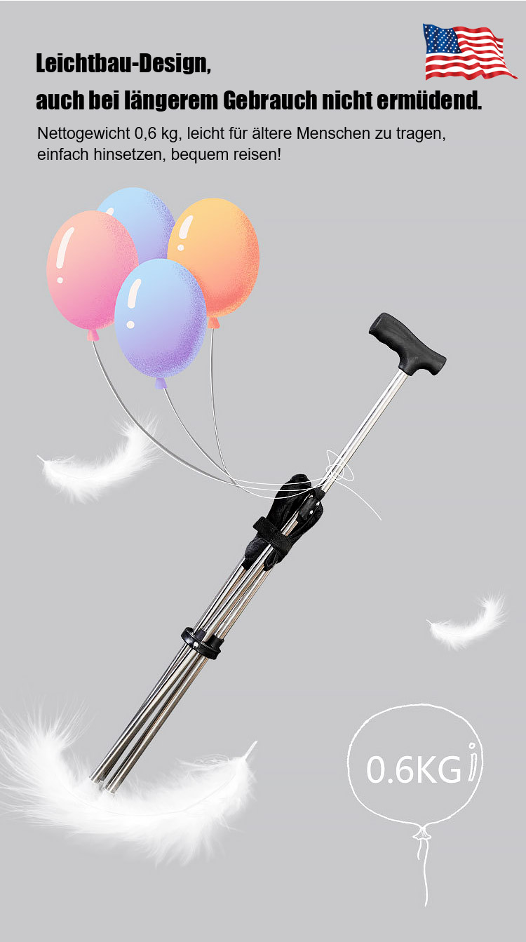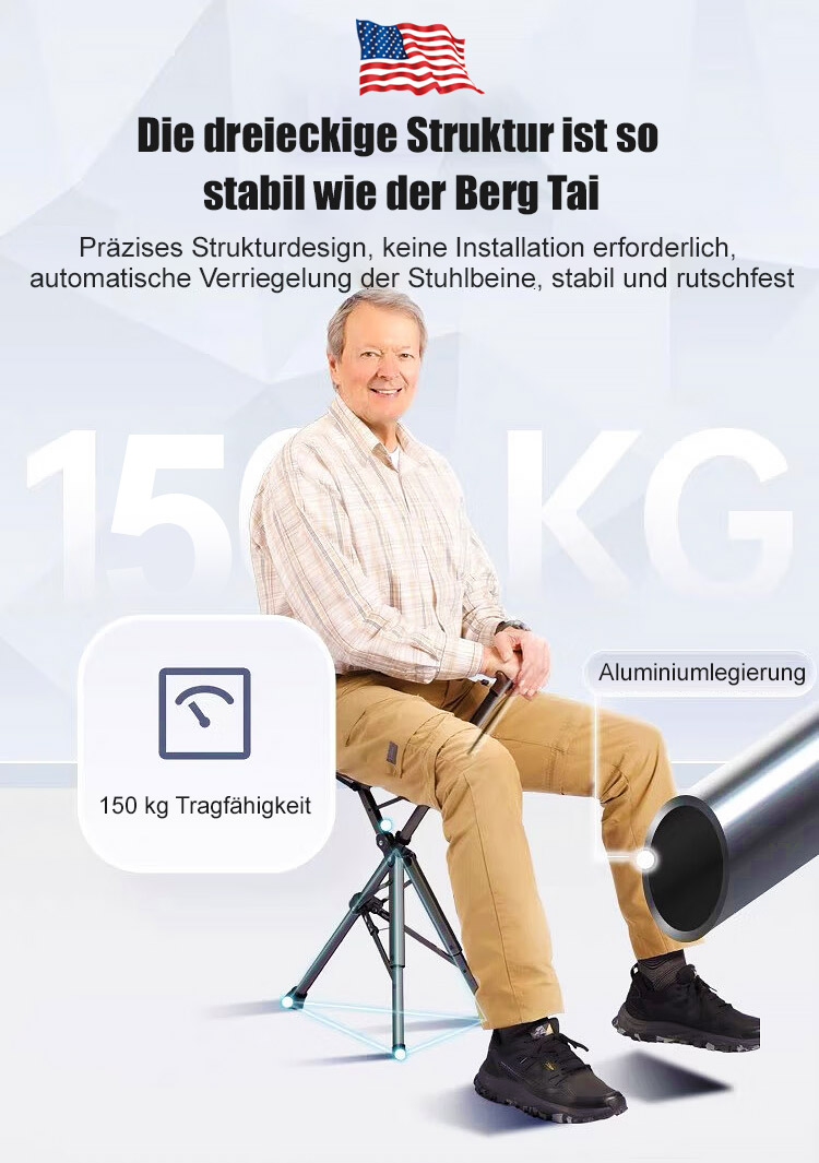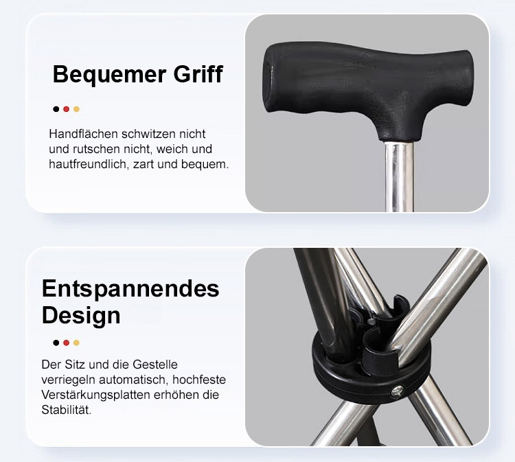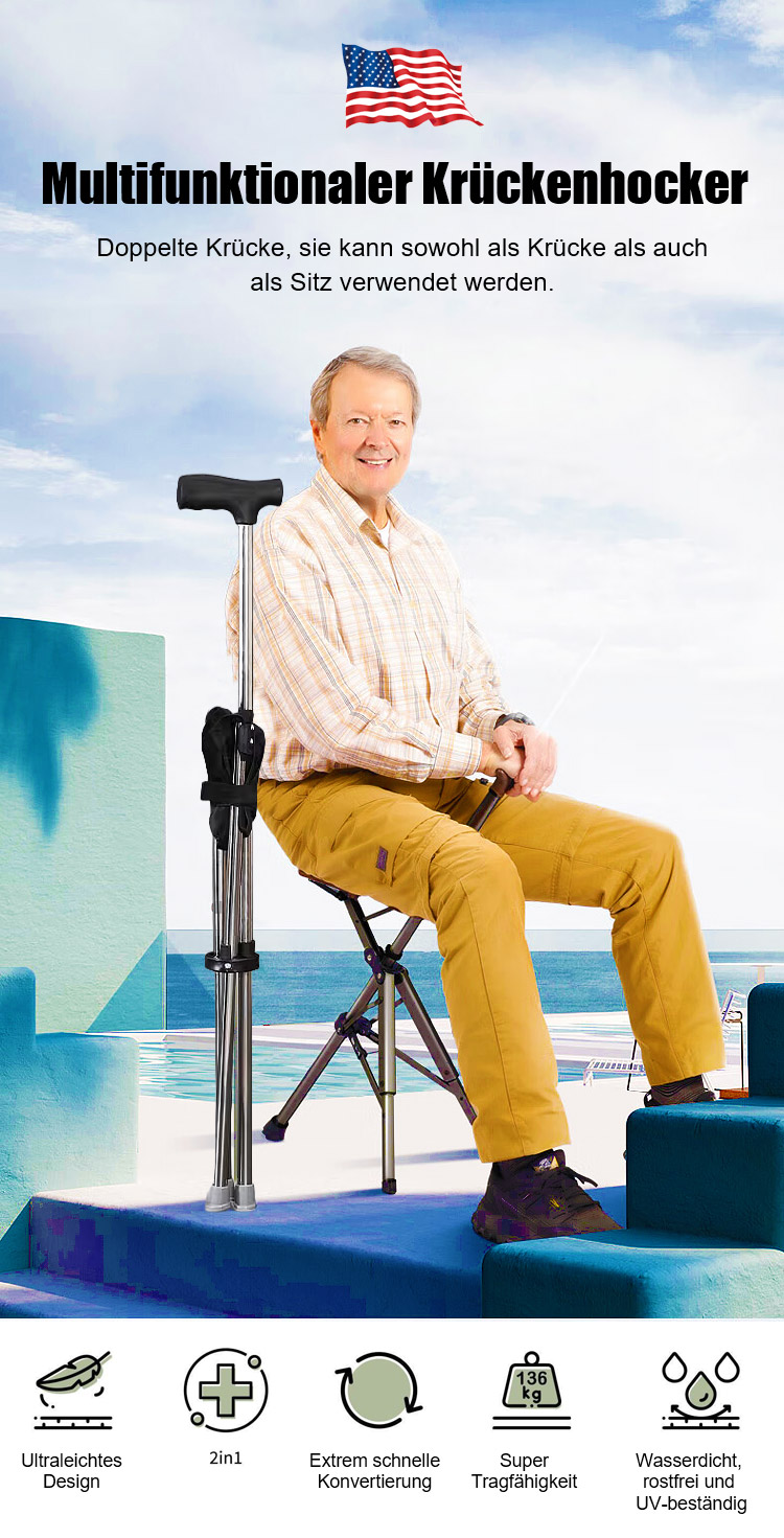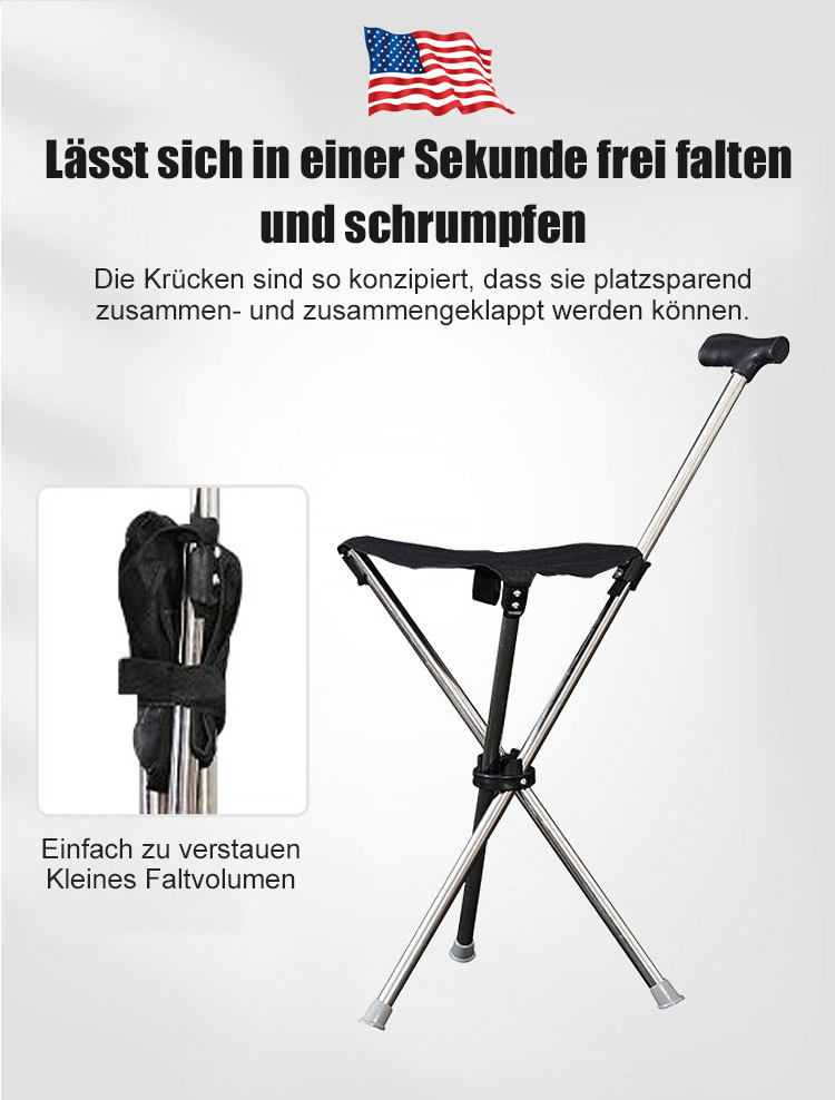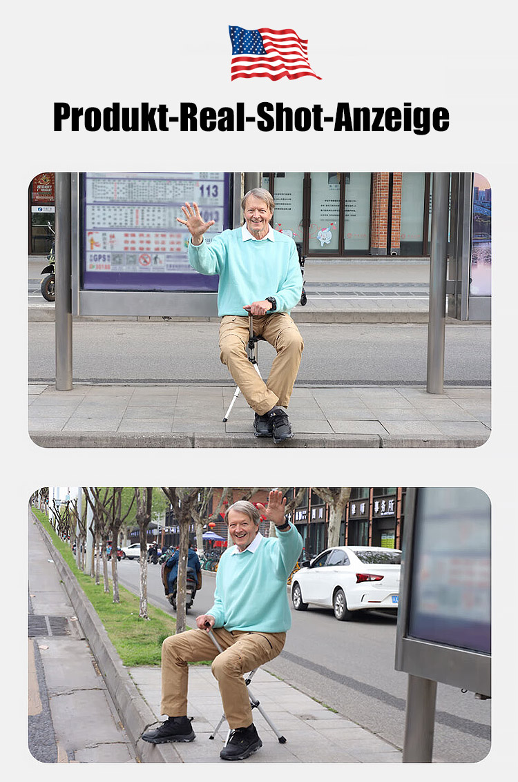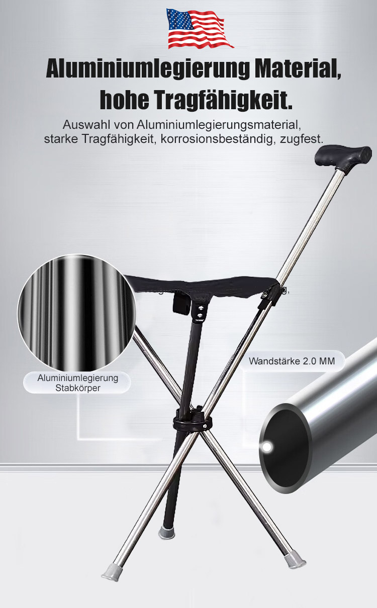 Der Gehstock wird in 1 Sekunde zum stabilen Sitz und bietet bequeme Erholung jederzeit, Hergestellt aus luftfahrtgeeignetem 7075 Aluminium, trägt bis zu 500kg für Ihre Sicherheit!