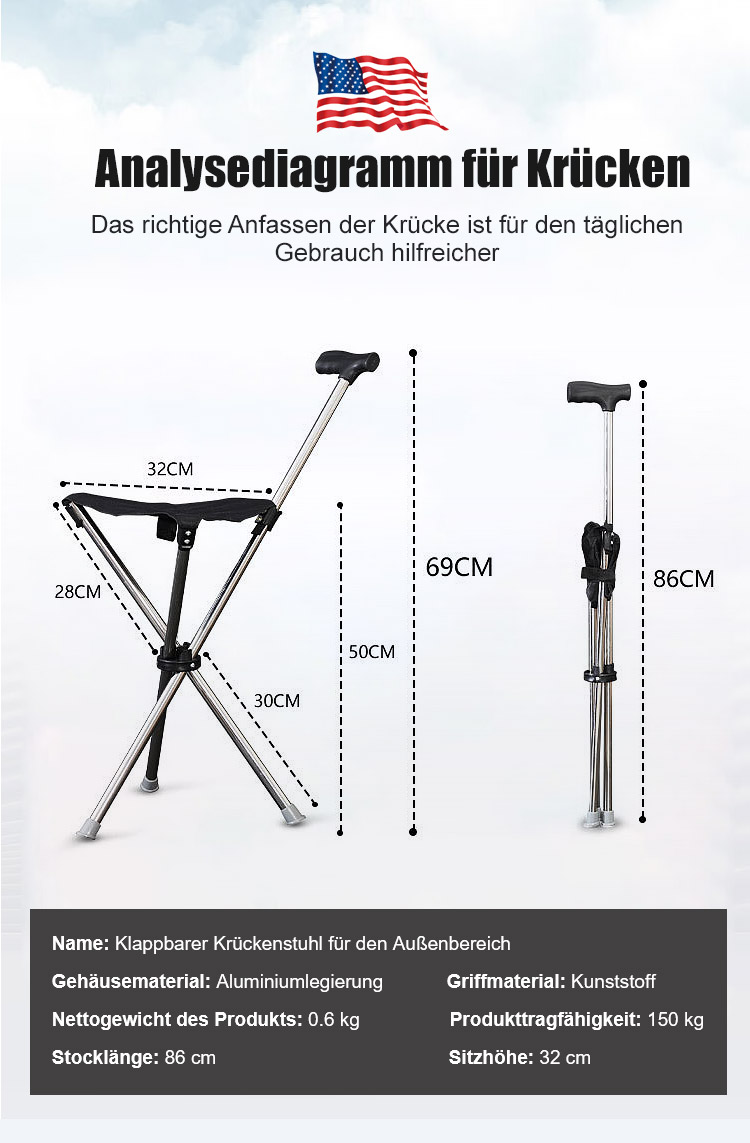 🆕✅Klappbarer Krückenstuhl für den Außenbereich, 5-stufig höhenverstellbar, Ultraleicht & tragbar!